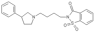 The sulfonylation of 1-benzylpyrrolidin-3-ol by means of mesyl or tosyl chlorides gives the corresponding sulfonates (II) or (III), which are condensed with the diphenyl cuprate lithium yielding 1-benzyl-3-phenylpyrrolidine (IV). The debenzylation of (IV) with ammonium formate over Pd/C in methanol affords 3-phenylpyrrolidine (V), which is finally condensed with 2-(4-bromobutyl)-1,2-benzoisothiazol-3-one S,S-dioxide (VI) by means of triethylamine in acetonitrile.