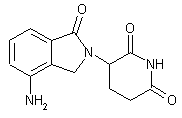 Cyclization of N-(benzyloxycarbonyl)glutamine (I) by means of CDI in refluxing THF gives 3-(benzyloxycarbonylamino)piperidine-2,6-dione (II), which is deprotected with H2 over Pd/C in ethyl acetate/4N HCl to yield 3-aminopiperidine-2,6-dione hydrochloride (III). Bromination of 2-methyl-3-nitrobenzoic acid methyl ester (IV) with NBS in CCl4 provides 2-(bromomethyl)-3-nitrobenzoic acid methyl ester (V), which is cyclized with the aminopiperidine (III) by means of triethylamine in hot DMF to afford 3-(4-nitro-1-oxoisoindolin-2-yl)piperidine-2,6-dione (VI). Finally, the nitro group of compound (VI) is reduced with H2 over Pd/C in methanol (1, 2).