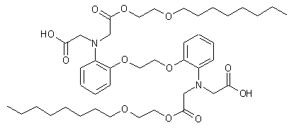 Treatment of 1,2-bis-(2-aminophenoxy)ethane-N,N,N',N'-tetraacetic acid (I) with acetic anhydride and pyridine provided the cyclic anhydride (II). Ethylene glycol octyl ether (V) was prepared by Williamson's synthesis from the sodium alkoxide of ethylene glycol (III) and n-octyl bromide (IV). Finally, the title diester was obtained by heating anhydride (II) with the octyl ether of ethyleneglycol (V).