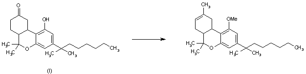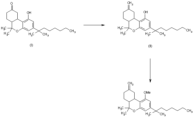 Nabilone (I) was converted to the methylene analogue (II). Then, methylation of phenol group provided the title compound.