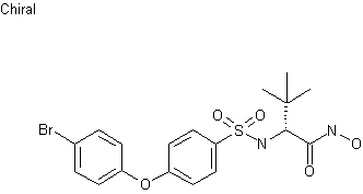 Chlorosulfonation of 4-bromodiphenyl ether (I) in cold CH2Cl2 afforded the corresponding sulfonyl chloride (II). After silylation of D-tert-leucine (III) with chlorotrimethylsilane and N-methylmopholine, coupling with acid chloride (II) provided sulfonamide (IV). Conversion of (IV) to acid chloride (V) was then achieved by treatment with oxalyl chloride and a catalytic amount of DMF at low temperature. Finally, condensation of (V) with hydroxylamine in aqueous THF gave rise to the target hydroxamic acid.