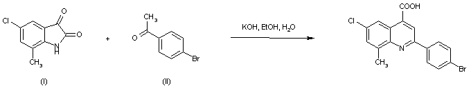 The title quinoline derivative was prepared by a Pfitzinger synthesis employing 5-chloro-7-methylisatin (I) and 4'-bromoacetophenone (II) in ethanolic KOH.