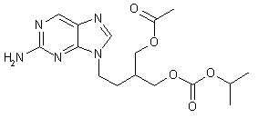 6-Deoxypenciclovir (I) was reacted with trimethyl orthoacetate in the presence of p-toluenesulfonic acid to give the cyclic orthoacetate intermediate (II) which, after aqueous quenching, afforded monoacetate ester (III). Subsequent treatment of (III) with isopropyl p-nitrophenyl carbonate (IV) using a catalytic amount of dimethylaminopyridine provided the target carbonate ester.