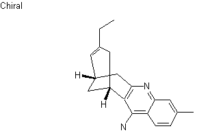 Condensation of diketone (I) with the organocerium reagent derived from methylmagnesium bromide and CeCl3 afforded the oxaadamantanol (II), which was further converted to mesylate (III) upon reaction with methanesulfonyl chloride and Et3N. Subsequent fragmentation of (III) by treatment with silica gel in CH2Cl2 produced bicyclic enone (IV). This was condensed with 2-aminobenzonitrile (V) in the presence of AlCl3 in refluxing 1,2-dichloroethane to furnish the target tetracyclic derivative. Resolution was then achieved by chiral MPLC.