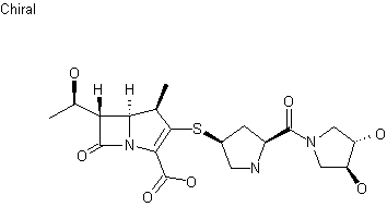 L-Tartaric acid (I) was converted to succinimimide (II) upon treatment with benzylamine in refluxing xylene with azeotropic removal of water. Subsequent reduction of (II) with borane, generated from NaBH4 and BF3, afforded pyrrolidine (III). Removal of the N-benzyl group of (III) was effected by hydrogenolysis over Pd/C, and the resulting secondary amine (IV) was coupled with the N-protected 3-thioacetylproline (V) to furnish amide (VI). Deacetylation of (VI) under basic conditions provided thiol (VII). Condensation of thiol (VII) with carbapenem enolphosphate (VIII) afforded thioether (IX). The 4-nitrobenzyl protecting groups of (IX) were finally removed by hydrogenolysis over Pd/C.