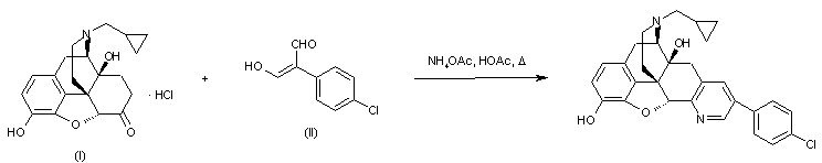 The title compound was prepared by condensation of naltrexone hydrochloride (I) with 2-(4-chlorophenyl)malondialdehyde (II) in the presence of ammonium acetate in refluxing AcOH.