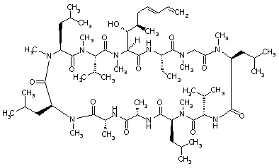 Bromination of the acetoxy ciclosporin (II) with NBS and AIBN in refluxing CCl4 yields the allyl bromide (VII), which is condensed with triphenylphosphine in toluene at 100 oC to afford the triphenylphosphonium bromide (VIII). Finally, bromide (VIII) is condensed with formaldehyde by means of NaOH followed by deacetylation with K2CO3 in MeOH.