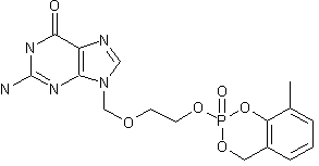 The condensation of acyclovir (I) with the cyclic chlorophosphane (II) in the presence of N,N-diisopropyl ethylamine afforded the acyclovir phosphite ester (III). This was then oxidized to the target phosphate using tert-butyl hydroperoxide.