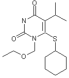 The title compound was synthesized by sulfenylation of 1-(ethoxymethyl)-5-isopropyluracil (I) with dicyclohexyl disulfide (II) in the presence of lithium 2,2,6,6-tetramethylpiperidine in cold THF.
