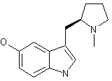 Silylation of 4-benzyloxyindole (I) employing tert-butyldimethylsilyl chloride and NaH gave the N-silyl derivative (II), which was brominated with N-bromosuccinimide at -78 C to afford the 3-bromoindole (III). After lithium-bromine exchange with n-BuLi at -78 C, the 3-lithio compound was condensed with N-methyl-D-proline methyl ester (IV) to give the indolyl ketone (V). The ketone function of (V) was finally reduced employing LiAlH4 in boiling dioxan, with concomitant cleavage of the benzyl ether to furnish the title compound.