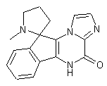 The known imidazoindenopyrazinone (I) was converted to oxime (II) by treatment with isoamyl nitrite and NaH. Subsequent reduction of oxime (II) by means of zinc and AcOH produced acetamide (III), which was hydrolyzed to amine (IV) upon refluxing in 2 N HCl. After protection of amine (IV) as the N-Boc derivative (V), alkylation with 1-bromo-3-chloropropane (VI) in the presence of NaH gave rise to the spiro derivative (VII). Deprotection of the Boc group of (VII) to give amine (VIII) was effected by treatment with trifluoroacetic acid. Finally, Eschweiler-Clarke reductive alkylation of (VIII) with formaldehyde and formic acid furnished the desired N-methyl derivative.