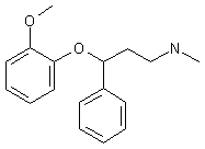 The reduction of omega-chloropropiophenone (I) with NaBH4 in ethanol gives 3-chloro-1-phenyl-1-propanol (II), which is treated with butyric anhydride and pyridine in dichloromethane yielding the corresponding racemic ester (III). The optical resolution of (III) with immobilized lipase B from Candida antarctica (CALB) affords a mixture of unreacted (S)-ester and (R)-alcohol (IV) that are separated by column chromatography. The condensation of alcohol (IV) with 2-methoxyphenol (V) by means of PPh3 and diethyl azodicarboxylate (DEAD) in THF gives the corresponding ether (VI), which is finally treated with methylamine in refluxing ethanol.
