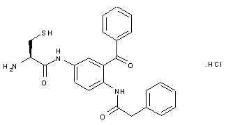 Acylation of 2-amino-5-nitrobenzophenone (I) with phenylacetic acid chloride (II) in refluxing toluene yields derivative (III), whose nitro group is reduced by means of SnCl2 in refluxing EtOAc to afford amine (IV). Coupling of (IV) with protected cysteine (V) by means of isobutyl chloroformate and N-methylmorpholine (NMM) in DMF provides protected derivative (VI), which is finally treated with TFA and Et3SiH in CH2Cl2 to furnish the target compound.