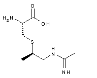 Alkylation of N-Boc-L-cysteine tert-butyl ester (I) with the chiral tosylate (II) gave thioether (III). The N-benzyloxycarbonyl protecting group of (III) was then cleaved by transfer hydrogenolysis using ammonium formate in the presence of Pearlman's catalyst to afford amine (IV). Condensation of this amine with the thioacetimidate (V) gave rise to amidine (VI). The N-Boc and tert-butyl ester protecting groups of (VI) were finally removed by treatment with a solution of HCl in dioxan.