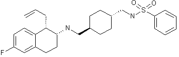 Condensation of 4-fluorophenylacetyl chloride (I) with ethylene in the presence of AlCl3 provided the beta-tetralone (II). After conversion of (III) into enamine (IV) upon reaction with pyrrolidine (III) in MeOH, alkylation with allyl bromide (V) afforded iminium salt (VI). Acid hydrolysis of (VI) generated the allyl tetralone (VII), which was subjected to reductive amination with ammonium acetate and sodium cyanoborohydride to produce the cis-1-allyl-2-aminotetralin (VIII) as the major isomer. Coupling of (VIII) with carboxylic acid (IX) using 2-(1H-benzotriazol-1-yl)-1,1,3,3-tetramethyluronium hexafluorophosphate (HBTU) gave amide (X), which was finally reduced to the target aminotetralin derivative with LiAlH4.