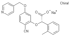 The alkylation of 2-fluoro-4-hydroxybenzonitrile (I) with 4-picolyl chloride (II) afforded ether (III). This was coupled with (R,S)-2-hydroxy-2-(2-methylphenyl)acetic acid (IV) in the presence of NaH in DMSO to produce the racemic adduct (V). Resolution of (V) was then achieved by fractional crystallization of the diastereoisomeric salts with (-)-ephedrine to furnish the desired (S)-enantiomer, which was finally isolated as the corresponding sodium salt.