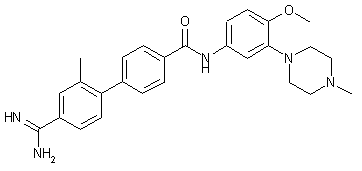 Coupling of 4-bromobenzoyl chloride (I) with amine (II) by means of Et3N in CH2Cl2 or THF yields bromo derivative (III), which is then converted into boronic acid derivative (IV) by treatment with triisopropyloxyboron and n-BuLi in THF/hexane. Suzuki reaction between (IV) and oxadiazole (V) by means of Pd(PPd3)4 and Na2CO3 in dimethoxyethane (DME)/H2O affords compound (VI), which is finally hydrogenated over Raney-Ni in H2O/MeOH/AcOH to furnish the desired product.