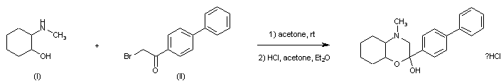 The title compound was synthesized by condensation of 2-methylaminocyclo-hexanol (I) with 4-bromoacetylbiphenyl (II), followed by conversion to the corresponding hydrochloride salt.