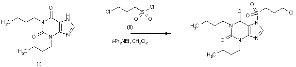 The title compound was prepared by condensation of 1,3-dibutylxanthine (I) with 3-chloropropylsulfonyl chloride (II) in the presence of diisopropyl ethylamine.