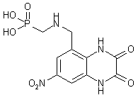 Treatment of diamino compound (I) with oxalic acid (II) in refluxing HCl provides tetrahydroquinoxalindione derivative (III), which is then converted into dichloro compound (IV) by reaction with refluxing POCl3. Treatment of (IV) with Na in refluxing MeOH affords dimethoxy quinoxaline (V), which is then brominated by reaction with NBS and AIBN in refluxing CCl4 to give bromomethyl derivative (VI). Nitration of (VI) by reaction with isopropyl nitrate in H2SO4 yields nitro derivative (VII), which is then converted into protected amino methyl derivative (IX) by reaction with di-tert-butyl-iminocarboxylate (VIII) and cesium carbonate in DMF. Removal of the Boc groups of (IX) by means of TFA gives aminomethyl derivative (X), which is then converted into phosphonic dimethyl ester (XII) by first treatment with formaline in EtOH followed by reaction with dimethyl phosphonate (XI), Et3N and trimethylsilyl chloride (TMSCl) in CHCl3. Finally, treatment of (XII) with trimethylsilyl bromide (TMSBr) in CH2Cl2 obtains the desired product.