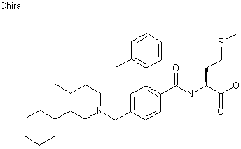 Cyclohexylacetic acid (VII) was converted to acid chloride and then condensed with n-butyl amine to give amide (VIII). Reduction of (VIII) with LiAlH4 afforded secondary amine (IX), which was alkylated with bromide (VI) yielding amino ester (X). After basic hydrolysis of the ester group of (X), the resultant carboxylic acid (XI) was coupled with L-methionine methyl ester (XII) to produce amide (XIII). The methyl ester group of (XIII) was finally hydrolyzed by treatment with LiOH.