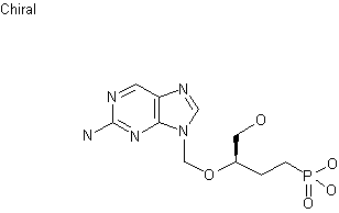 Regiospecific opening of the chiral 2-(benzyloxymethyl)oxirane (I) with lithiated diethyl methylphosphonate in the presence of boron trifluoride etherate afforded phosphonate (III). After conversion of (III) to the chloromethyl ether (IV), upon treatment with paraformaldehyde and HCl, condensation with the sodium salt of 2-amino-6-chloropurine (V) gave the nucleoside phosphonate (VI). Simultaneous hydrogenolysis of the chlorine atom and benzyl ether of (VI) by transfer hydrogenation in the presence of ammonium formate and Pd/C yielded (VII). Finally, the phosphonate ester groups of (VII) were cleaved by means of bromotrimethylsilane.