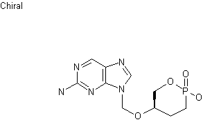 Regiospecific opening of the chiral 2-(benzyloxymethyl)oxirane (I) with lithiated diethyl methylphosphonate in the presence of boron trifluoride etherate afforded phosphonate (III). After conversion of (III) to the chloromethyl ether (IV), upon treatment with paraformaldehyde and HCl, condensation with the sodium salt of 2-amino-6-chloropurine (V) gave the nucleoside phosphonate (VI). Simultaneous hydrogenolysis of the chlorine atom and benzyl ether of (VI) by transfer hydrogenation in the presence of ammonium formate and Pd/C yielded (VII). The phosphonate ester groups of (VII) were then cleaved by means of bromotrimethylsilane to give phosphonic acid (VIII). Finally, intramolecular cyclization of (VIII) by treatment with DCC furnished the title compound.