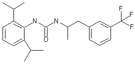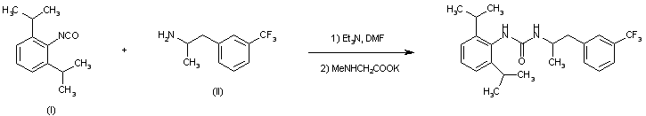 The title urea derivative was obtained by condensation of 2,6-diisopropylphenyl isocyanate (I) with alpha-methyl-3-(trifluoromethyl)phenylethyl amine (II) in the presence of Et3N, followed by treatment with potassium sarcosinate as isocyanate scavenger.