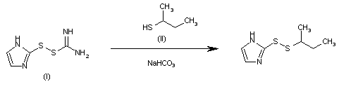 The reaction of S-(2-imiazolylsulfanyl)isothiourea (I) with 1-methylpropylthiol (II) by means of NaHCO3 in methanol/water gives the target disulfide.