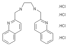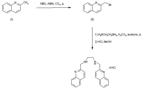 Benzylic bromination of 2-methylquinoline (I) by means of N-bromosuccinimide afforded 2-(bromomethyl)quinoline (II). Dimerization of (II) using ethylenediamine gave the corresponding bis(quinolylmethyl)ethylenediamine, which was finally converted to the tetrahydrochloride salt.