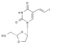 The condensation of the chiral dioxolane (I) with 5(E)-(2-iodovinyl)uracil (II) by means of Tbdms-OTf and lutidine gives the silylated nucleoside (II), which is purified by chromatography. Finally, this compound is deprotected by means of TBAF in acetonitrile.