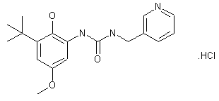 Diazotization of p-anisidine (I), followed by coupling of the resulting diazonium salt (II) with 3-tert-butyl-4-hydroxyanisole (III) produced azobenzene (IV). Subsequent protection of the hydroxyl group of (IV) with chloromethyl methyl ether in the presence of NaH afforded the methoxymethyl derivative (V). Aniline (VI) was then obtained by catalytic hydrogenation of (V) over Pd/C. Condensation of aniline (VI) with triphosgene, followed by reaction with 3-picolylamine (VII) gave rise to urea (VIII). The methoxymethyl protecting group of (VIII) was finally removed by treatment with methanolic HCl.