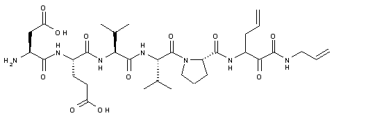 Racemic allylglycine (I) was protected as the N-Boc derivative (II) and then converted to the Weinreb amide (III) by treatment with N,O-dimethylhydroxylamine and BOP. Reduction of (III) with LiAlH4 afforded aldehyde (IV), which, upon treatment with acetone cyanohydrin (V), furnished the corresponding hydroxy nitrile (VI). Acid hydrolysis of the nitrile (VI) with concomitant Boc group deprotection provided hydroxy acid (VII), which was further reprotected as the N-Boc derivative (VIII). Coupling of hydroxy acid (VIII) with allylamine (IX) yielded amide (X). After Boc group cleavage with HCl in dioxan, the resulting amine (XI) was coupled with pentapeptide (XII) (obtained using a peptide synthesizer under standard conditions), to give the alpha-hydroxyamide (XIII).