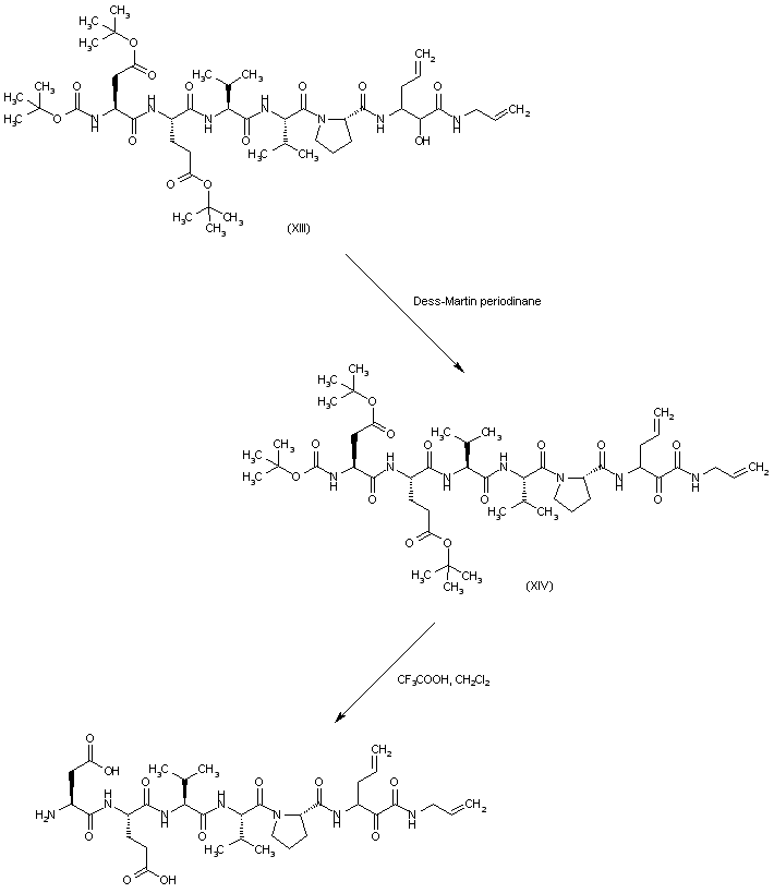This was converted to the keto amide (XIV) by Dess-Martin oxidation. Acidic deprotection of the tert-butyl groups of (XIV) then furnished the title compound.
