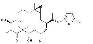 Deoxygenation of epothilone B (I) by means of tungsten hexachloride and butyllithium produced the olefin epothilone D (II). After protection of (II) as the bis-O-silylated derivative (III), cyclopropanation with chloroiodomethane and diethylzinc afforded the cyclopropane adduct (IV). A higher yield procedure to prepare (IV) involved addition of dibromocarbene, generated from bromoform and NaOH under phase-transfer conditions, to olefin (II), followed by reduction of the resulting dibromocyclopropane (V) with azobisisobutyronitrile. Finally, desilylation employing trifluoroacetic acid furnished the title compound.