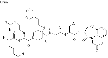Synthesis of EN 290154: Cleavage of both the Fmoc protecting group and ethyl ester of (XV) by means of HBr in HOAc followed by Boc protection affords (XVI) which is then anchored to a chloromethylated resin to yield (XVII). Deprotection of dihydro-benzothiazepinone (XVII) with TFA in presence of ethanedithiol, followed by coupling with Boc-Ser-OH by means of BOP/DIEA in CH2Cl2, yields derivative (XVIII). Deprotection of (XVIIII) followed by coupling with intermediate (XIV) in the same conditions described for (XVII) affords derivative (XIX). Next steps include sequencial Boc removal and coupling with Boc-Arg(Tos)-OH and then Boc-Lys(Fmoc)-OH. Finally the product is cleaved from the resin by means of HF/anisole.