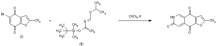 The title furoisoquinoline was synthesized by regioselective [4+2] cycloaddition between 5-bromo-2-methylbenzo[b]furan-4,7-dione (I) and 3-(tert-butyldimethylsilyloxy)-1-isopropoxy-2-aza-buta-1,3-diene (II), with simultaneous desilylation under the reaction conditions.