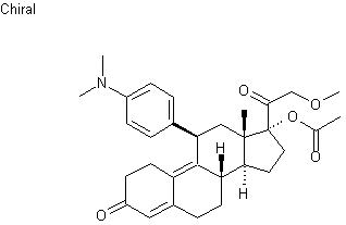 | 合成路线图解说明: Protection of cyanohydrin ketal (I) with bromomethyldimethylsilyl chloride (A) in presence of DMAP and Et3N affords derivative (II), which is converted into (III) by means of LDA in cyclohexane and aqueous HBr. Treatment of (III) with KOAc in acetone yields acetoxy derivative (IV), which is then hydrolyzed to provide (V) by means of KHCO3 in refluxing MeOH. Protection of (V) as its acetal form by treatment with ethylene glycol in p-TsOH affords (VI), which is converted into methyl ether (VII) by treatment with Me3O+BF4- in presence of 1,8-bis(dimethylamino)-naphthalene. Oxidation of (VII) by means of H2O2, Na2HPO4 and (CF3)2CO in CH2Cl2 yields epoxide (VIII), which is converted into (X) by a Grignard reaction with (IX) in THF followed by treatment with CuCl. Diketal (X) is then deprotected by means of TFA in THF to provide derivative (XI), which is finally acetylated with (CF3CO)2O in a mixture of HOAc, p-TsOH and CH2Cl2. |