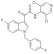 Alkylation of 5-fluoroindole (I) with 4-fluorobenzyl chloride (II) provided the N-benzyl indole (III). Subsequent reaction of (III) with oxalyl chloride furnished the indolylglyoxylic acid chloride (IV). This was finally coupled with 4-amino-3,5-dichloropyridine (V) to afford the corresponding amide.