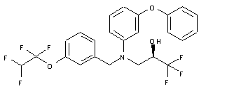 Radical bromination of 3-(1,1,2,2-tetrafluoroethoxy)toluene (I) by means of N-bromosuccinimide in the presence of AIBN provided benzyl bromide (II), which was then condensed with 3-phenoxyaniline (III) in refluxing cyclohexane to afford (IV). Alternatively, (IV) was obtained by reductive condensation of 3-(1,1,2,2-tetrafluoroethoxy)benzaldehyde (A) with 3-phenoxyaniline (III) in the presence of sodium triacetoxyborohydride. The condensation of the secondary amine (IV) with commercially available trifluoromethyloxirane (V) of unspecified enantiomeric composition in the presence of ytterbium triflate furnished a 1:7 mixture of enantiomeric amino alcohols (VI). The title compound was then isolated from (VI) as the minor enantiomer by means of preparative chiral HPLC.