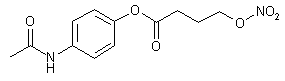 The esterification of paracetamol (I) with 4-bromobutyric acid (II) by means of DCC and DMAP in DMF gives the corresponding ester (III), which is finally treated with AgNO3 in hot acetonitrile to yield the target nitrate ester.