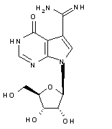 Diazotization of toyocamycin (I) in aqueous HOAc furnished the pyrrolopyrimidinone (II). Subsequent addition of hydroxylamine to the cyano group of (II) gave rise to the amidoxime (III), which was then reduced to the target amidine upon treatment with Raney-nickel.