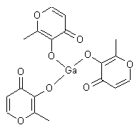 The title gallium complex was prepared by mixing solutions of maltol (I) and a soluble gallium salt, such as gallium chloride or gallium nitrate, followed by neutralization with Na2CO3.