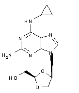 Selective hydrolysis of the methyl esters (III) with LiOH provides the desired cis-dioxolane acid (IX) and the corresponding trans isomer (VIII), which are separated by column chromatography. Alternatively, ester (III) is subjected to enzymatic resolution with several different enzymes to provide a mixture of the undesired trans-dioxolane acid (VIII) and the unreacted cis-ester (X), separable by partition between H2O and EtOAc. The desired cis-ester (X) is then hydrolyzed with LiOH to the carboxylic acid (IX). Oxidative decarboxylation of acid (IX) employing lead tetraacetate furnishes the acetoxy dioxolane (XI). After silylation of 2-amino-6-chloropurine (XII) with hexamethyldisilazane in the presence of ammonium sulfate, coupling with the acetoxy dioxolane (XI), promoted by either trimethylsilyl triflate or by iodotrimethylsilane, gives rise to an anomeric mixture of adducts (XIII). Following chromatographic isolation of the target cis-anomer, chloride displacement with cyclopropylamine yields the diamino purine derivative (XIV). The benzoate ester group of (XIV) is finally hydrolyzed to the title compound by means of methanolic ammonia.