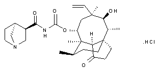 Ethyl (3R,4S)-1-azabicyclo[2.2.1]heptane-3-carboxylate (I) was hydrolyzed in boiling HCl, and the resulting acid (II) was further converted to acid chloride (III) by treatment with SOCl2. Condensation of acid chloride (III) with (3R)-3-deoxo-11-deoxy-3-methoxy-11-oxo-4-epimutilin (IV) in the presence of silver cyanate furnished the acylcarbamate ester (V). Acid-promoted rearrangement of (V) to the mutilin acylcarbamate then gave the title compound, which was isolated as the corresponding hydrochloride salt.