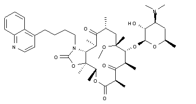 Acidolysis of (VII) with HCl furnishes des(hexopyranosyloxy) derivative (VIII), which is then acetylated with acetic anhydride in ethyl acetate to give protected derivative (IX). Compound (IX) is then oxidized by treatment with 3-ethylcarbodiimide (EDCI) and pyridinium trifluoroacetate in DMSO/CH2Cl2 to afford ketone (X). Mesylation of (X) with methanesulfonyl chloride (MsCl) in pyridine yields mesylated derivative (XI), which is then converted into the 10,11-anhydro form (XII) by reaction with 1,8-Diazabicyclo(5.4.0)undec-7-ene (DBU) in acetone. Activation of compound (XII) by means of NaH and carbonyl diimidazole (CDI) in THF/DMF provides derivative (XIII), which is coupled with amine (XIV). Finally, treatment with refluxing MeOH furnishes the desired compound.