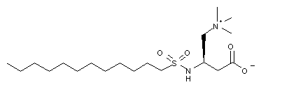 (R)-Aminocarnitine (I) was esterified with HCl in refluxing isobutanol to afford the isobutyl ester (II). Acylation of amino ester (II) with dodecanesulfonyl chloride (III) in the presence of triethylamine provided the corresponding sulfonamide (IV). The title compound was then obtained by basic hydrolysis of the isobutyl ester group of (IV).
