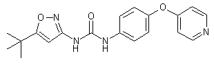 Treatment of 3-amino-5-tert-butylisoxazole (IV) with carbonyldiimidazole produced the imidazolide (V), which was then condensed with amine (III) to furnish the title urea.