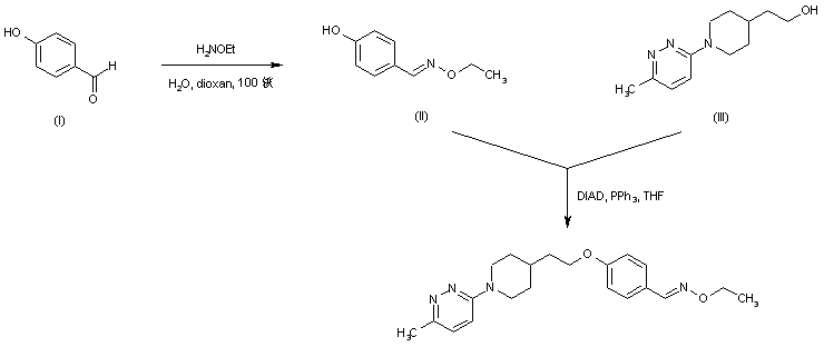 Treatment of 4-hydroxybenzaldehyde (I) with O-ethylhydroxylamine produced the corresponding O-ethyloxime (II). Coupling of (II) with alcohol (III) under Mitsunobu conditions then gave the title ether.