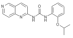Treatment of 2-isopropoxyphenylamine (I) with triphosgene (II) and DIEA in dichloromethane affords isocyanate (III), which is then converted into the desired urea derivative by treatment with amine (IV) in refluxing acetonitrile.